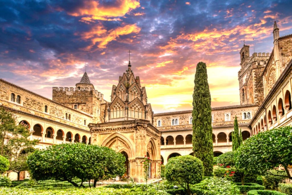 Visitaremos el Monasterio de Guadalupe. La Virgen de Guadalupe pertenece al grupo de vírgenes negras europeas que simbolizan a María Magdalena. Cristóbal Colón tenía una profunda devoción por la Virgen de Guadalupe de Extremadura (España), a quien visitó varias veces, hizo promesas y nombró una isla caribeña en su honor durante su segundo viaje, convirtiéndose en un símbolo clave en la evangelización del Nuevo Mundo, donde la devoción se extendió rápidamente, hermanando a España con América. Colón, agradecido por el éxito de su viaje, llevó consigo una réplica de la imagen morena y donó joyas al santuario español, consolidando a Guadalupe como la “Reina de la Hispanidad” y un puente espiritual entre ambos continentes. Poniéndole nombre a sus 3 barcos en honor a la esta Virgen de Guadalupe que representa a María Magdalena: La niña (la hija de María Magdalena, Sara). La pinta (la virgen morena). Y la Santa María.
